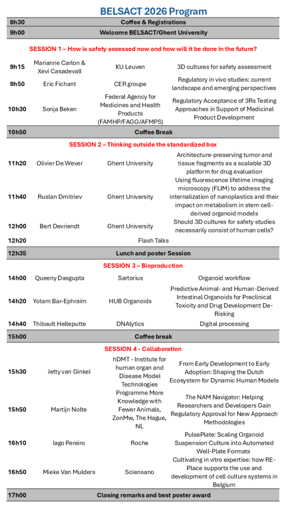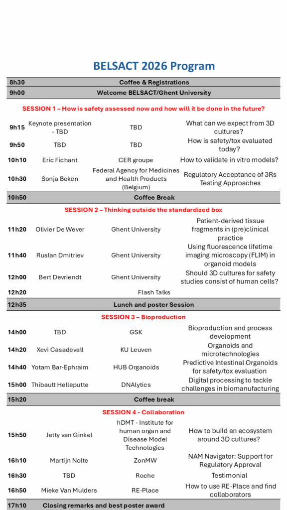 The 2026 edition will feature a scientific program developed in close collaboration with Ghent University, drawing on its recognized expertise in life sciences, bioengineering, and regulatory science. This edition will focus on the use of 3D culture systems for safety evaluation. By providing more physiologically relevant models than traditional 2D approaches, 3D cultures improve the prediction of human responses while reducing reliance on animal testing. The meeting will examine their translational value, practical implementation across multiple applications, and the associated technical and regulatory challenges.